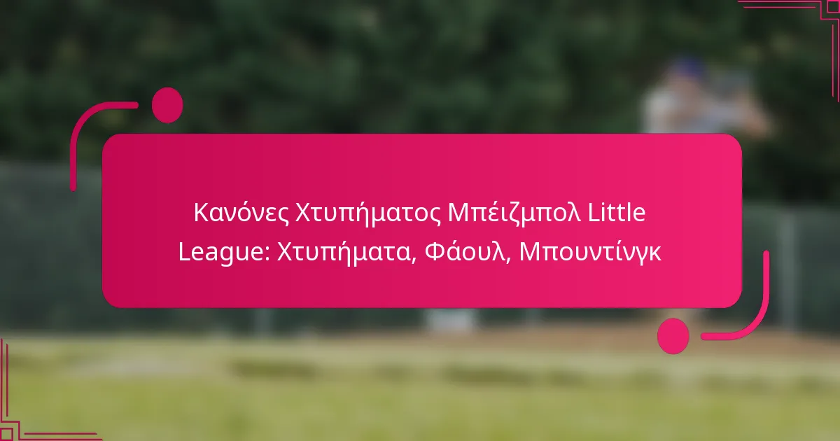 Η κατανόηση των κανόνων χτυπήματος στο μπέιζμπολ της Little League είναι ουσιώδης για τους παίκτες και τους προπονητές, καθώς διέπουν βασικές πτυχές του παιχνιδιού. Οι χτυπητές καλούνται όταν ο παίκτης χτυπά και αποτυγχάνει ή δεν χτυπά σε μια προσφορά εντός της ζώνης χτυπήματος, ενώ οι φάουλ μπάλες μπορούν να επηρεάσουν τους μετρητές χτυπημάτων και τη στρατηγική. Επιπλέον, το μπάσιμο προσφέρει μια τακτική επιλογή για την προώθηση των τρεξίματος, αλλά συνοδεύεται από συγκεκριμένους κανονισμούς για τη διατήρηση της δικαιοσύνης και της ασφάλειας στο γήπεδο.